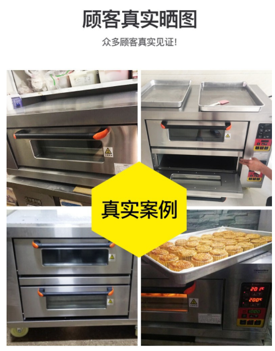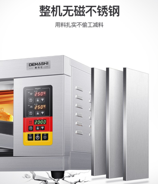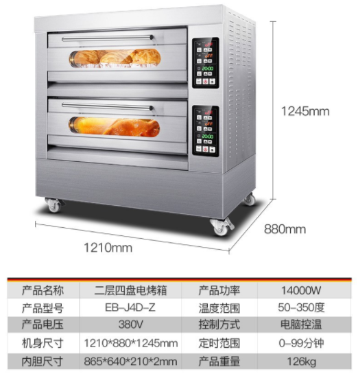 溫度範圍400度,烤箱的材質材質就是前面不鏽鋼,後面烤漆闆, 内部免漆闆   ,保溫層(céng)9公分厚,帶(dài)6個記憶按紐,第一次設置好之後直接按記憶按鈕1、2、3、4、5、6,帶(dài)記憶、帶(dài)定時電腦版分層(céng)式電烤箱 紅外線電熱管。烤爐擁有多種規格:1層2盤、2層4盤、3層6盤、3層9盤,供您選擇。電烤箱要根據您現在使用的額定電壓發貨的,兩相電是220V,三相電是380V。建議用6平方線!60A空氣開關!一般商用的電器都是沒有插頭,爲瞭(le)更好保護設備(bèi)和安全需要用到空氣開關,自備(bèi)電線跟水管的,我們提供接線視頻的!